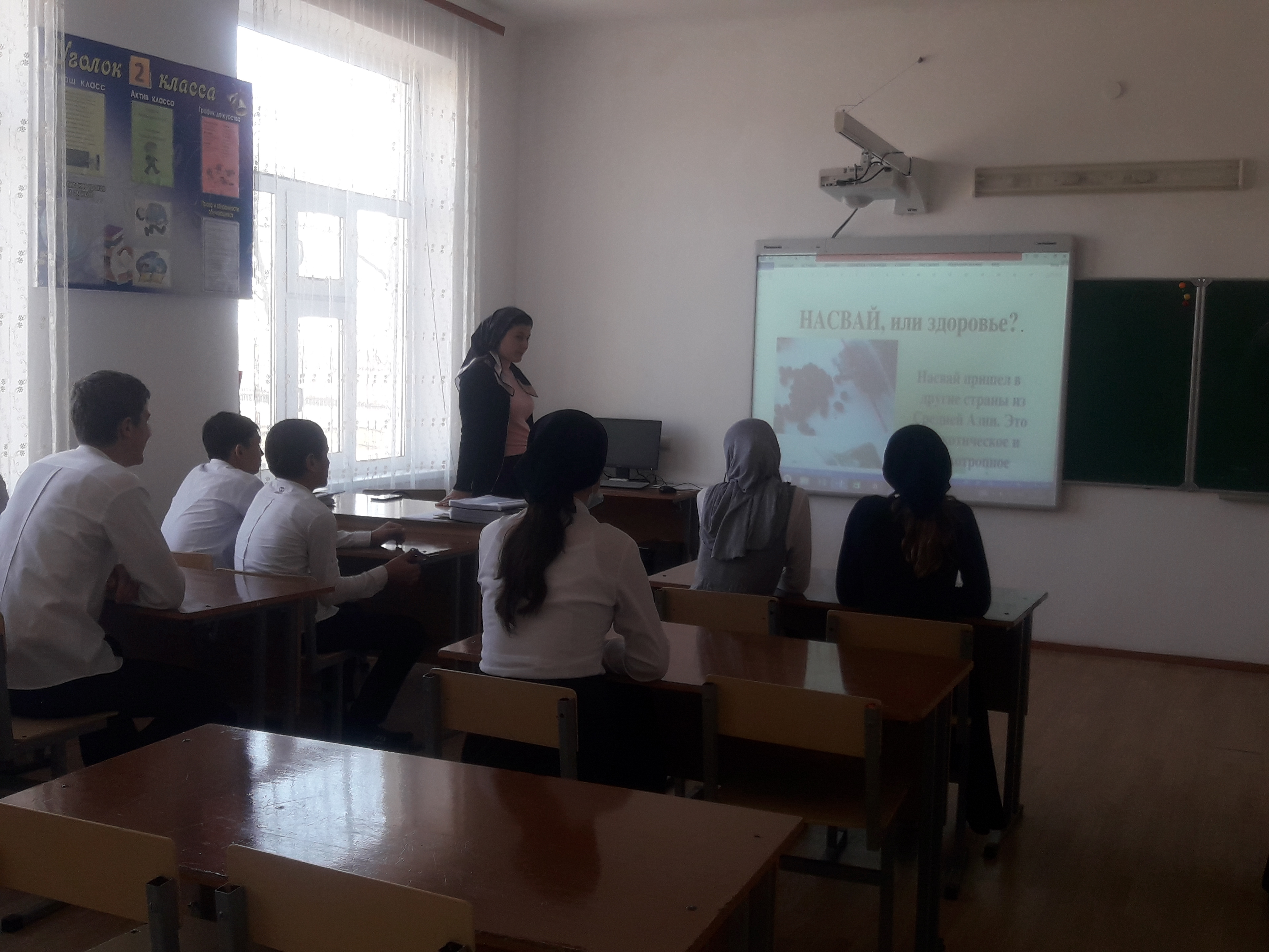 14.10.2020г. также социальным педагогом Алиевой М.А. и педагогом-психологом Иттиевой Е.Б. в 9, 11-х классах были проведены беседы на темы: «Что такое снюс и чем он опасен», «Насвай. Вред, воздействие на организм».