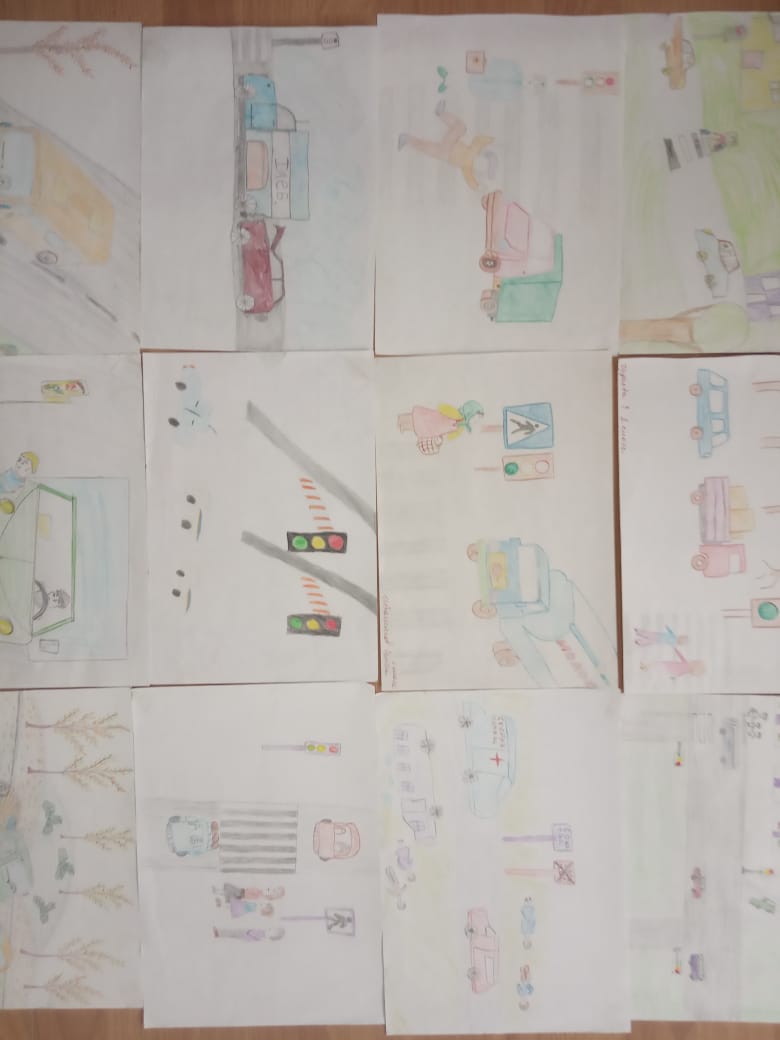 16.01.2021С учащимися (3-4 классов) был проведен конкурс рисунков, на тему: «Безопасность глазами детей». С целью воспитания обучающихся, безопасному поведению средствами изобразительного искусства. Ребята проявили большую творческую активность, они не только нарисовали интересные рисунки, но проверили свои «Дорожные» знания. Учащиеся изобразили свой взгляд на безопасность дорожного движения.