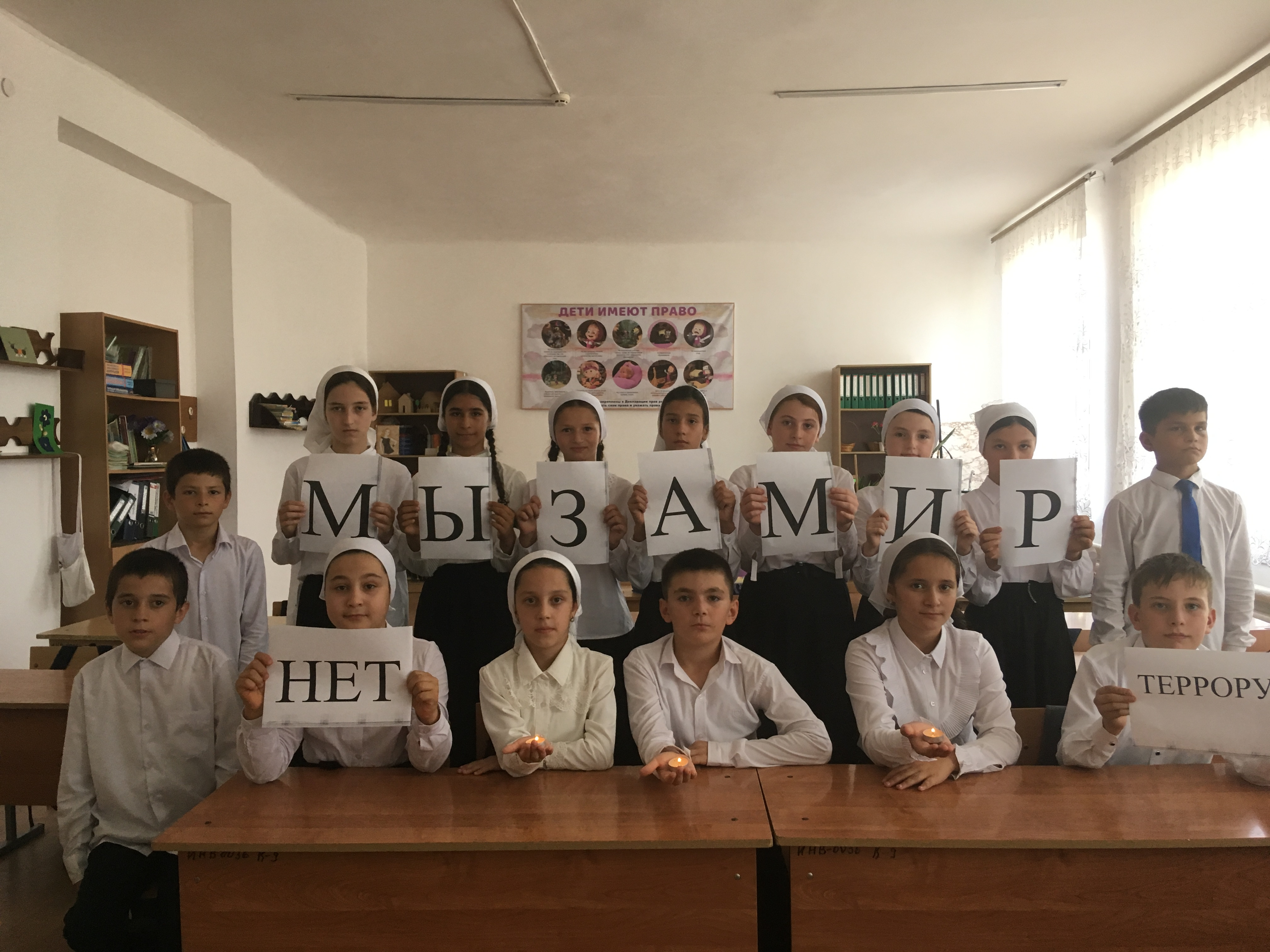 В первую очередь ребята узнали о трагических событиях, знакомили с историей захвата школы в городе Беслан, о правильных действиях спецназа, освобождении школы и погибших, защищая заложников. Рассказывали о памятниках, посвященных трагическим событиям. Просмотрели презентации о тех страшных днях. Так же ребята узнали об истории возникновения терроризма во всём мире и нашей стране. В ходе мероприятий освящались такие понятия, как «террористы», «заложники», время и дата происходящих событий, количество жертв. Так же говорили и о других трагедиях, совершенных террористами: «Норд -ост», в США взрыв башен - близнецов и др.. Дети узнали о том, что в мире насчитывается около 820 террористических группировок, в которые входят 300 тыс. террористов. Основной задачей мероприятий было сформировать у учащихся нравственных ценностей, представлений о добре и зле, сущности милосердия, побуждение к активным поступкам во имя добра. Ребята почтили минутой молчания жертв террористов во всём мире. В конце мероприятий говорили о том. что важно помнить, что с терроризмом следует не только и не столько бороться, сколько предупреждать его возникновение. Не ради красивых слов говорить о необходимости уважения культурных и конфессиональных особенностей, права на сохранение мира для всех народов, населяющих Россию. Только толерантность и взаимоуважение позволят предупредить разрастание социальной базы терроризма и лишат преступников надежды на поддержку в обществе. Это лучшая профилактика экстремистских настроений. Сегодня весь мир должен объединиться в борьбе с жестокостью и терроризмом. Ведь чужой беды не бывает, горе не имеет национальных и религиозных различий. Нужно помнить, что в наших собственных силах обезопасить себя и окружающих!