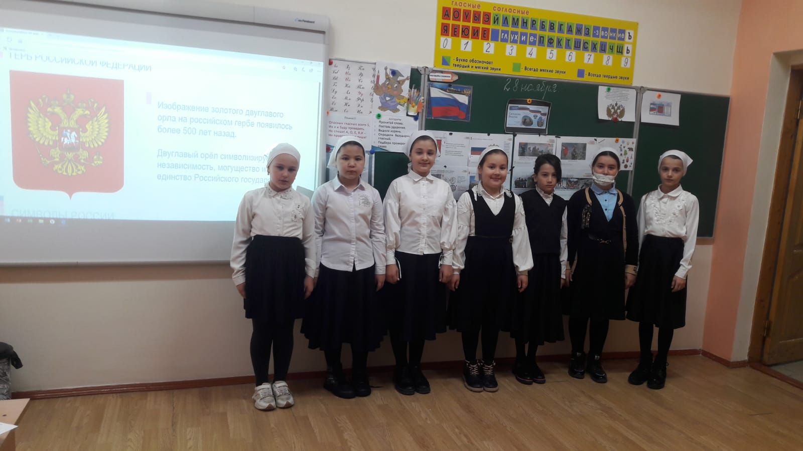 28.11.2022Занятие внеурочной деятельности цикла «Разговоры о важном» прошло по теме «СИМВОЛЫ РОССИИ».Целью занятия является расширение представлений обучающихся об истории официальных символов страны (герб, гимн, флаг), отражающих её суверенитет, единство прошлого и настоящего Российской государственности, историческую самобытность нации, объединяющего начала государства для всех граждан.