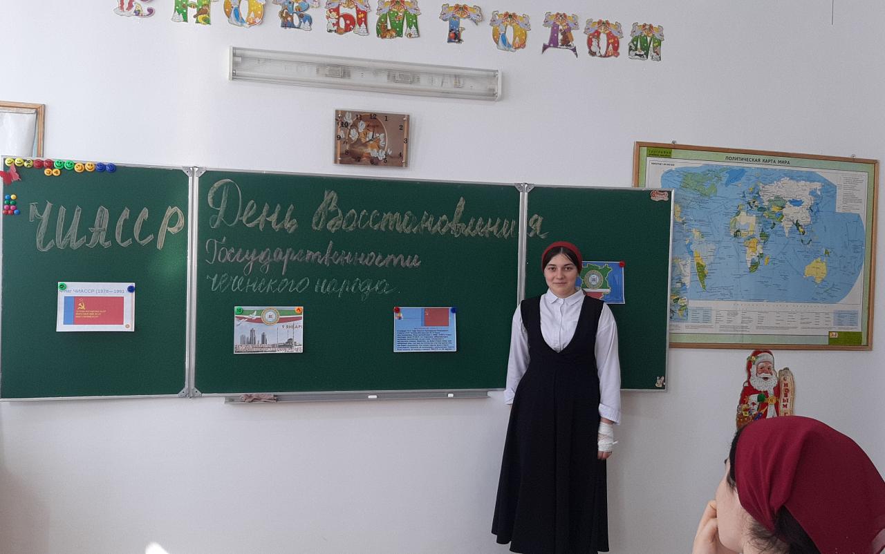 На части ее территории была образована Грозненская область. Остальная территории упраздненной республики была передана в состав соседних республик.После депортации чеченцы были вычеркнуты из списка народов СССР, и делалось все, чтобы стереть память о них: уничтожались редкие рукописи, книги и архивы, записи фольклорных текстов, любая литература и периодические издания с упоминаниями чеченцев. В горах взрывались средневековые башни, гробницы и святилища, с землей сравнивались зиярты и кладбища, а надгробия разбивались и использовались для строительных работ. До сих пор в Чечне находят надгробные памятники, которые использовались при строительстве мостов, дорог, фундаментов. В период депортации демонтировались все памятники чеченским героям революции и гражданской войны. С исторических карт Грозненской области исчезли все чеченские названия сел и районов.После смерти Иосифа Сталина и расстрела Лаврентия Берии партийные и государственные органы Советского Союза приняли ряд мер, направленных на последовательное восстановление социалистической законности и преодоления тяжелых последствий репрессивной политики сталинского режима.24 ноября 1956 года было принято Постановление ЦК КПСС «О восстановлении национальных автономий калмыцкого, карачаевского, чеченского и ингушского народов». На основании этих документов 9 января 1957 г. Президиум Верховного Совета СССР издал Указ №149/14 «О восстановлении Чечено-Ингушской АССР в составе РСФСР». В тот же день Президиум Верховного Совета РСФСР издал Указ №721/4 «О восстановлении Чечено-Ингушской АССР и упразднении Грозненской области».21 февраля 1957 года Совет Министров РСФСР принял постановление «О мерах помощи Чечено-Ингушской АССР». В качестве первостепенной была поставлена задача (с учетом предложения Оргкомитета по ЧИАССР) переселить в 1957 году из Казахской ССР и Киргизской ССР 17 тысяч семей чеченцев и ингушей (с учетом прибывших до 1 января 1957 года).Народы Чечено-Ингушской республики добились того, к чему они стремились долгие годы: процветания своей исторической Родины. Хвала людям, которые в те смутные времена трудились, прокладывая дорогу в светлое будущее своих потомков. Мы и сегодня с восхищением слушаем рассказы наших дедов и отцов, о том, как, несмотря на все трудности, которые довелось пережить нашему народу, мы смогли не только устоять и не пасть духом, но и сохранить свой родной язык, культуру и традиции.Наши деды оставили нам в наследство эту землю, на которой мы сегодня живем и строим счастливое будущее.В рамках празднования даты восстановления ЧИАССР 09.01.2023 г в МБОУ «Бурунская СОШ» прошли классные часы и беседы:«Возвращение родины», «Мир и Дружба навеки», «Навеки вместе» «Важные страницы нашей истории».
