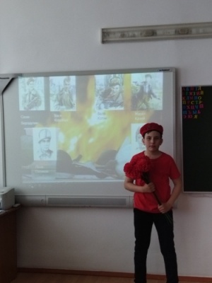 Девизом данных мероприятий стали слова: «Мы, молодое поколение России, всегда будем помнить героические подвиги нашего народа в годы Великой Отечественной войны. Навечно останутся в наших сердцах имена героев, отдавших свою жизнь за наше будущее. Никогда не забудем мы тех, кто, не жалея своей жизни, завоевал свободу и счастье для грядущих поколений. Обещаем упорно учиться, чтобы быть достойными нашей великой Родины, нашего героического народа».Учащиеся много узнали о солдатах-героях, пионерах-героях Вов, об их подвигах, о городах героях, а в этот день они узнали о том, как было тяжело детям в военное время.А в конце урока подвели итог и поняли, что нам нельзя забывать сколько людей погибло во имя того, чтобы наша жизнь была мирной и счастливой.Минутой молчания почтили все учащиеся память всех, кто ценной собственной жизни для нас с вами отстоял эту победу.