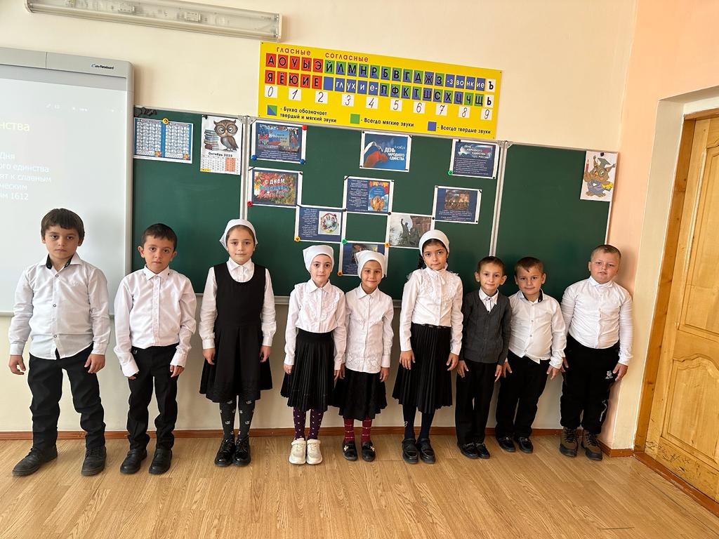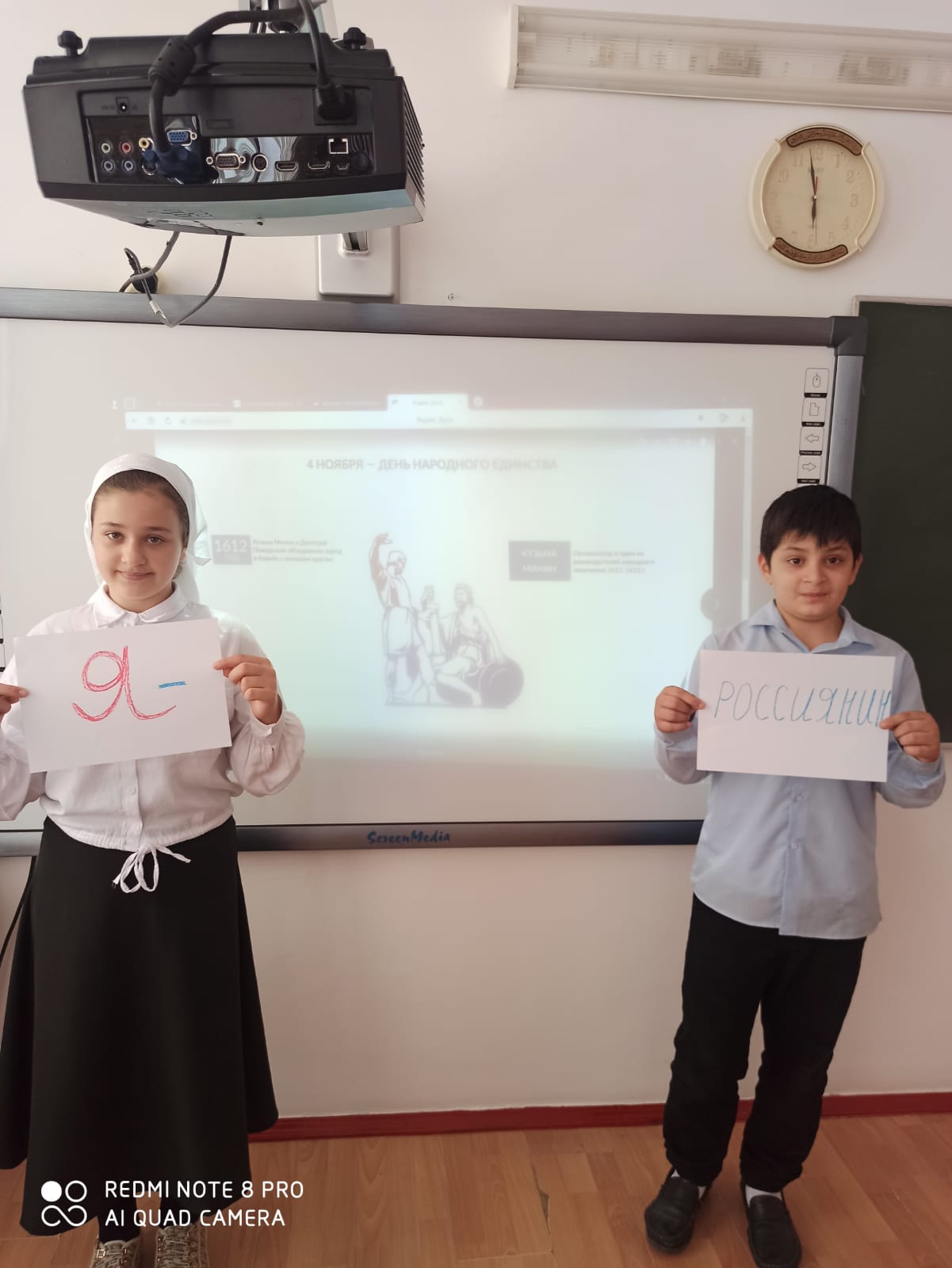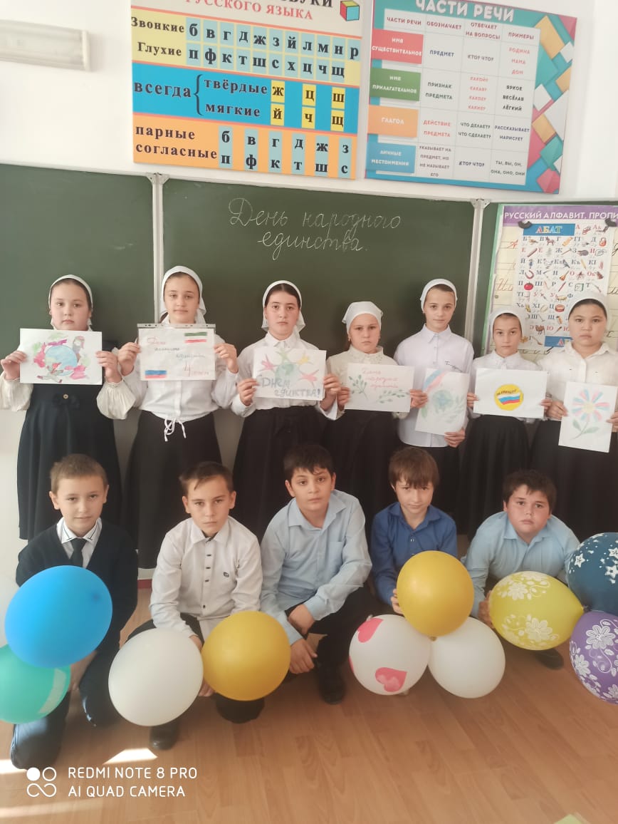 27.10.2023Накануне праздника «Дня народного Единства» в МБОУ «Бурунская СОШ» с 25.10.2023г. по 27.10.2023г были проведены мероприятия посвященные данному празднику.Целью данного мероприятия являлось то, чтобы дать представление о новом празднике, раскрыть значение и роль праздника как дня сохранения единства народа, начала государственности, завершение смуты на Руси; воспитание чувства любви к своей Родине, ее героическому прошлому, традициям и обычаям, культуре народа. Задачами данного мероприятия было:-познакомить с важнейшими историческими событиями, людьми, принимавшими в них активное участие –К. Мининым и Д. Пожарским; -закрепить знания обучающихся о государственной символике России; -посредством художественного и музыкального оформления прививать любовь к красоте, природе России, воспитывать патриотизм, гордость и уважение к истории и народу, -развитие творческих способностей обучающихся, сценической культуры; -развитие чувства коллективизма, взаимной ответственности за порученное дело.
