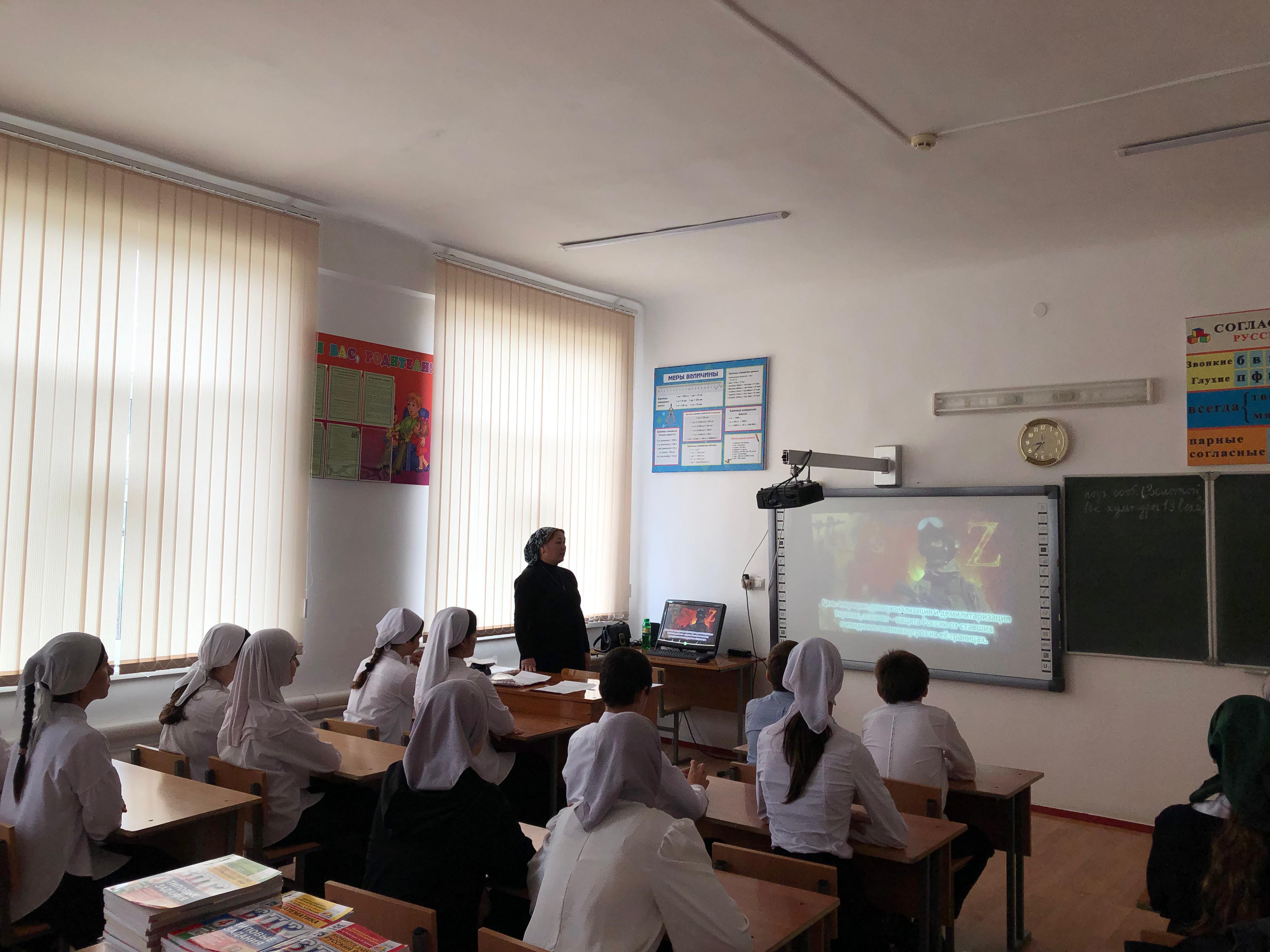 18.11.2023В МБОУ « Бурунская СОШ» 18 ноября, был проведен классный час, посвященный участникам СВО на Украине. Учащиеся были ознакомлены с тем, что 24.02.2022г. президентом РФ В.В. Путиным было принято решение о начале СВО на Украине. Было рассказано какова цель и задача СВО. Была показана презентация героически погибших участников, которые исполнили свой долг перед Родиной. На конкретных примерах учащиеся увидели, что настоящие герои живут рядом,что мужество,храбрость,любовь к Родине- качество настоящего человека и патриота своей страны.