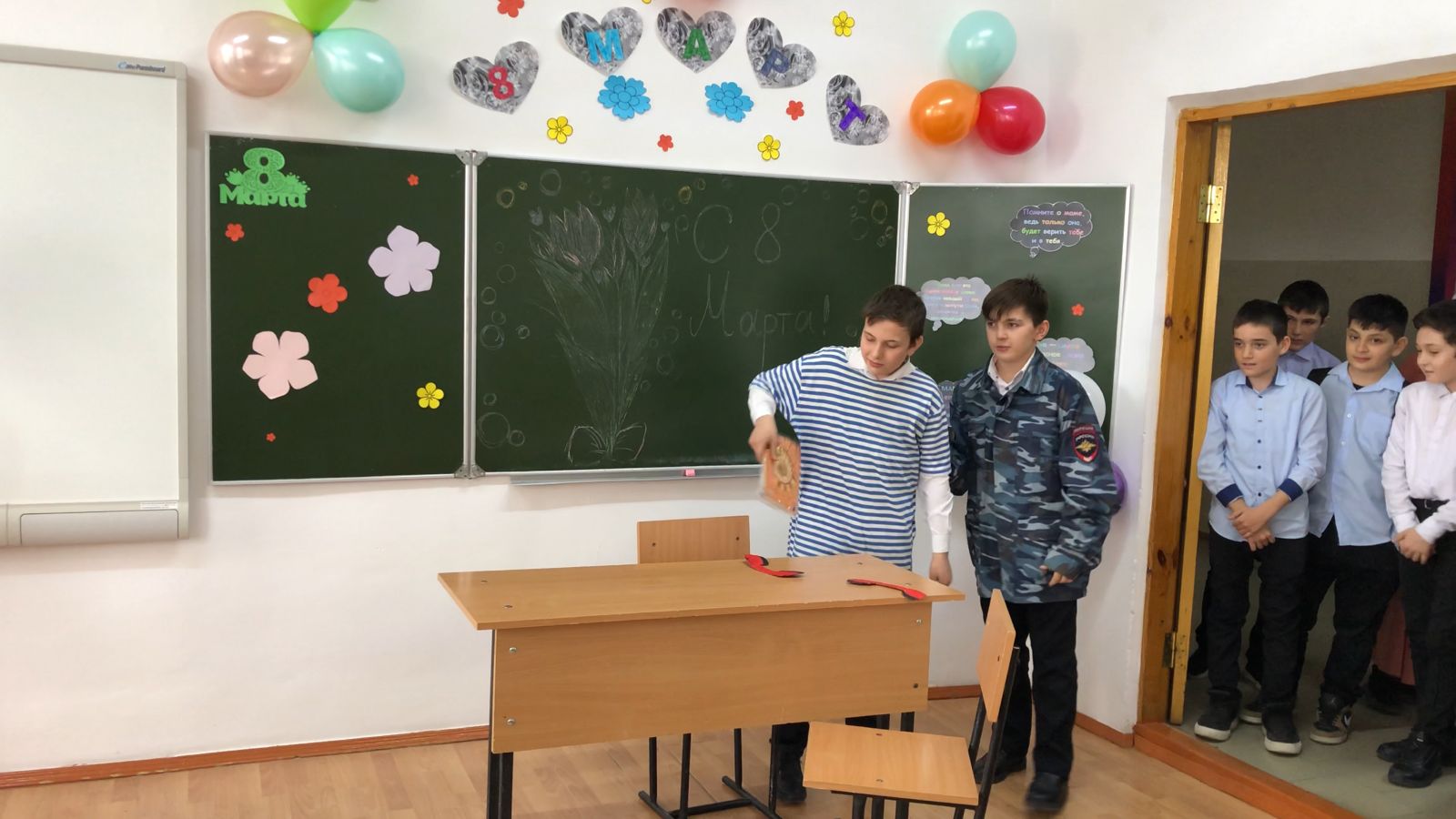 членами отряда «Юные Кадыровцы» был оформлен стенд «С Международнымженским днем».06.03. в школе прошла конкурсная программа «А ну-ка девушки!». Открылипрограмму ученики начальной школы, поздравлениями девочек, учителей нашейшколы, которые читали стихотворения и учащиеся 5-6 классов, которые показалисценки.В конкурсе приняли участие девочки 6-11 классов. В конкурсе приняло участие 5команд, по 5 девочек. Свои таланты проявляли участницы команд в разныхконкурсах. Команды занявшие места были награждены грамотами.Основные цели мероприятий по воспитанию любви к Родине, родным и близкимлюдям, воспитанию толерантности, были выполнены в полном объеме.
