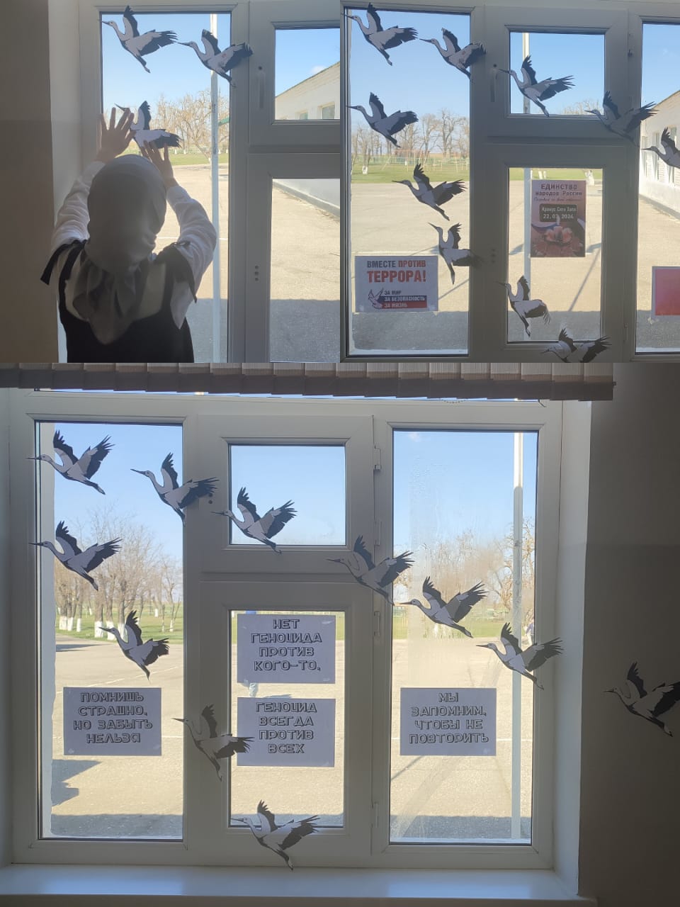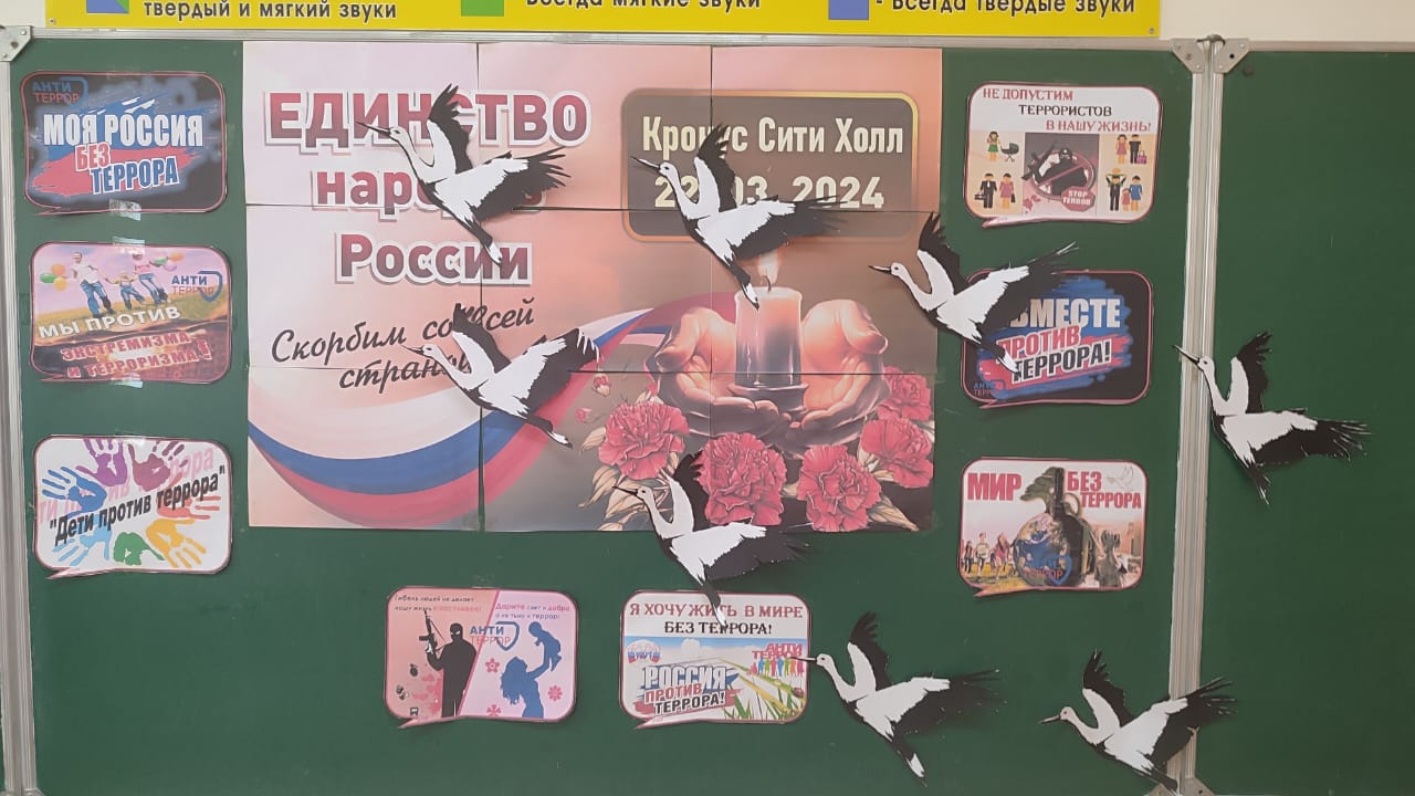 01.04.2024МБОУ "Бурунская СОШ" присоединилась к акции "Окна памяти", во время которой были украшены окна белыми журавлями, в память о тех, кто погиб во время теракта 22 марта 2024 г в концертном центре «Крокус Сити Холл»