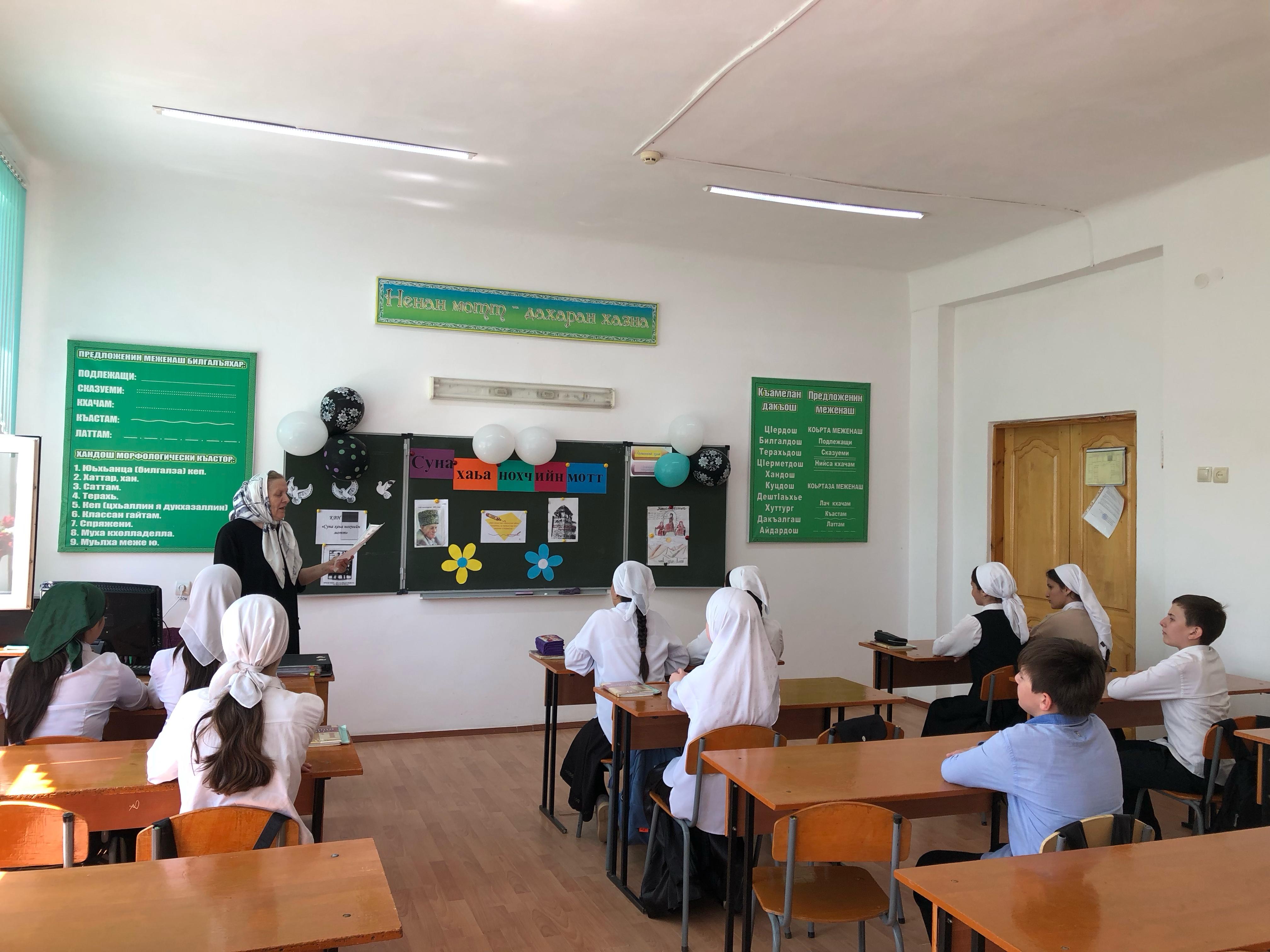 24.04.202425 апреля в Чеченской Республике отмечается один из самых главных национальных праздников— День чеченского языка. Он был учрежден в 2007 году Указом Главы Чеченской Республики,Героя России Рамзана Кадырова.⠀Первый Президент ЧР, Герой России Ахмат-Хаджи Кадыров считал, что любить и уважать родной язык— значит уважать себя и свой народ. Он повторял, что, потеряв родную речь, мы перестанемсуществовать как нация.На сегодняшний день Главой ЧР Рамзаном Кадыровым уделяется особое внимание популяризациичеченского языка. В республике созданы самые благоприятные возможности для обогащения родногоязыка. Ежегодно проводятся различные конкурсы и фестивали, направленные на сохранение и развитиеродной речи.Чеченский язык изучается в школах и вузах, выходят газеты и журналы на родном языке, выпускаютсяпередачи, проходят престижные мероприятия.Язык по праву считается ключевым признаком национальной самоидентификации. Более того, онпредставляет огромную ценность для развития общества и обеспечения культурно-нравственнойпреемственности поколений. Именно в языке одухотворяется весь народ, вся его жизнь, история,обычаи и традиции.⠀23 апреля 2024 года в МБОУ «Бурунская СОШ» учитель чеченского языка Бахаева З.С. провела в 6классе КВН «Суна хаьа нохчийн мотт». Атмосфера была праздничная, дети активно работали, народном чеченском языке. Ярко, красочно была оформлена доска.Мероприятие проводилось с целью:-Повышение интереса к изучению родного языка с целью популяризации высших ориентиров;-Активация работы по духовно-нравственному воспитанию подростков на основе обычаев и традицийчеченского народа;-Знакомство с историей, как наследие предков.