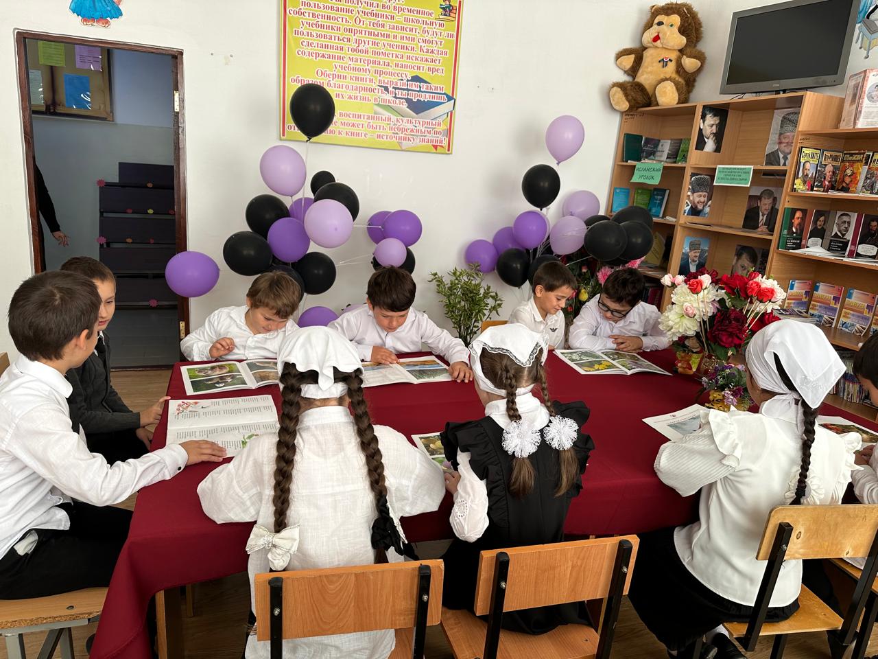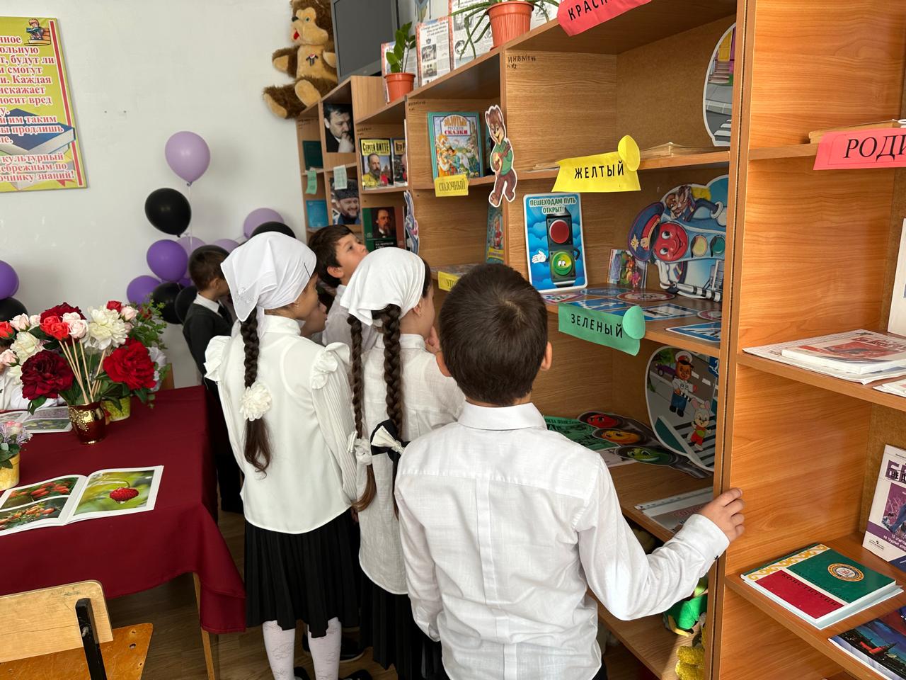 А для обучающихся 2-3 классов школьный библиотекарь Шидиева Э.З. провела обзорно-ознакомительную экскурсию по школьной библиотеке, в ходе которой ребята узнали историю возникновения книги, познакомились с новыми для них словами: абонемент, читальный зал, формуляр, стеллаж и т.д. Также они узнали, как найти нужную книгу, познакомились с правилами библиотеки, правилами обращения с книгой. С большим интересом ребята рассматривали разнообразные детские книги.