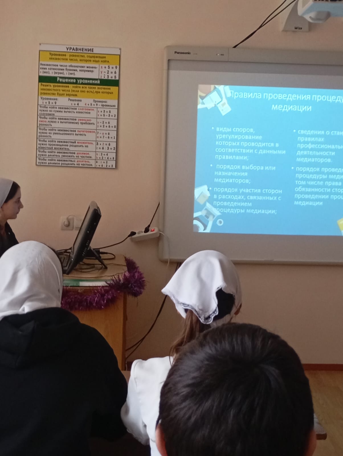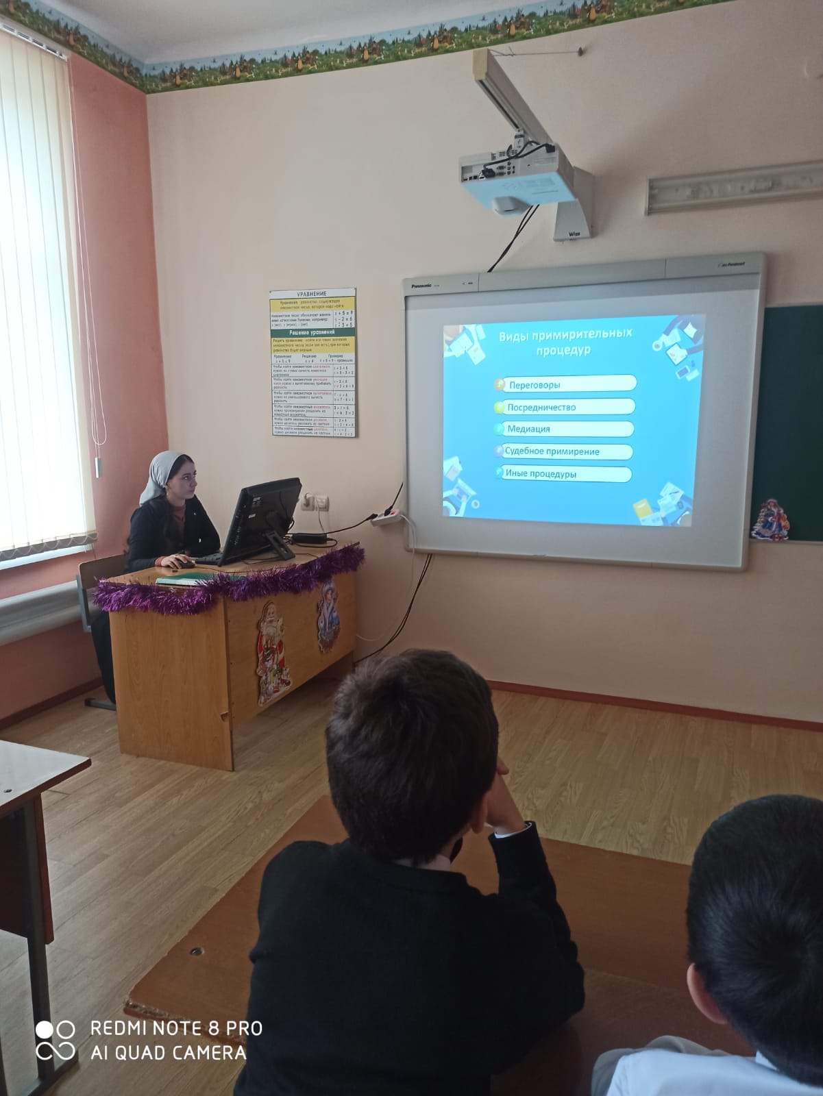 23.12.2024В рамках Всероссийского дня правовой помощи детям в МБОУ «Бурунская СОШ» социальным педагогом Абдукаримовой Ж.М. проведены беседы в 6-7 классах, на темы: «Медиация как альтернатива», «Примирительные процедуры».