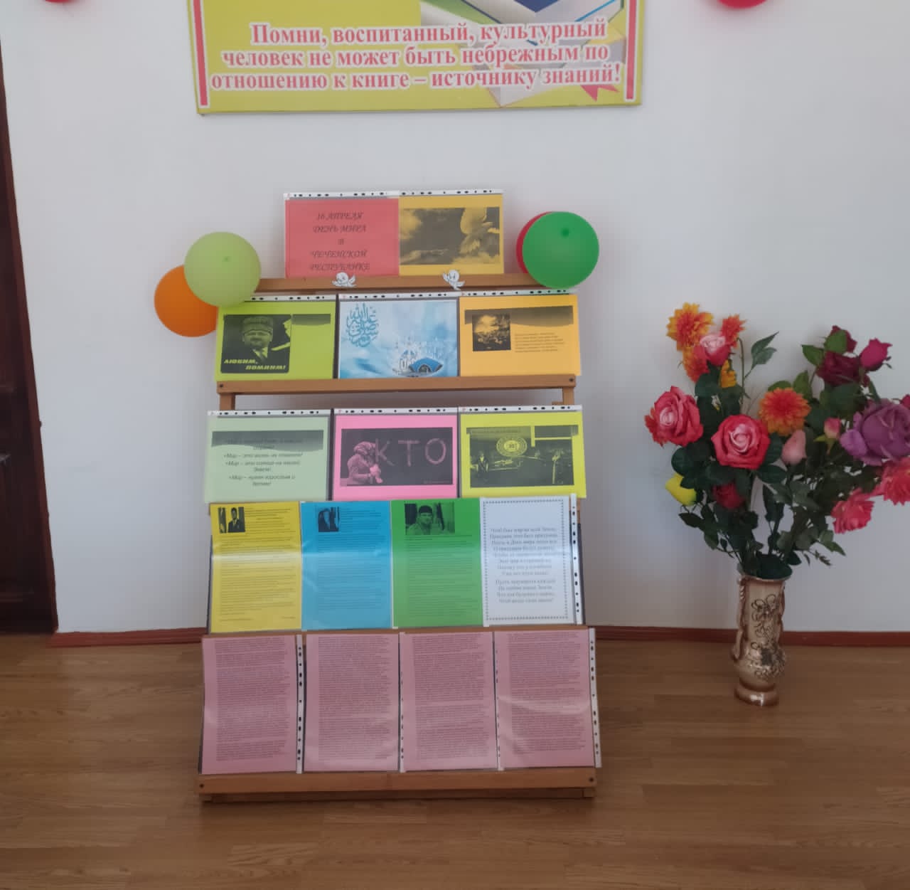 Библиотекарем школы была оформлена информационная выставка «16 апреля-День мира в Чеченской Республик