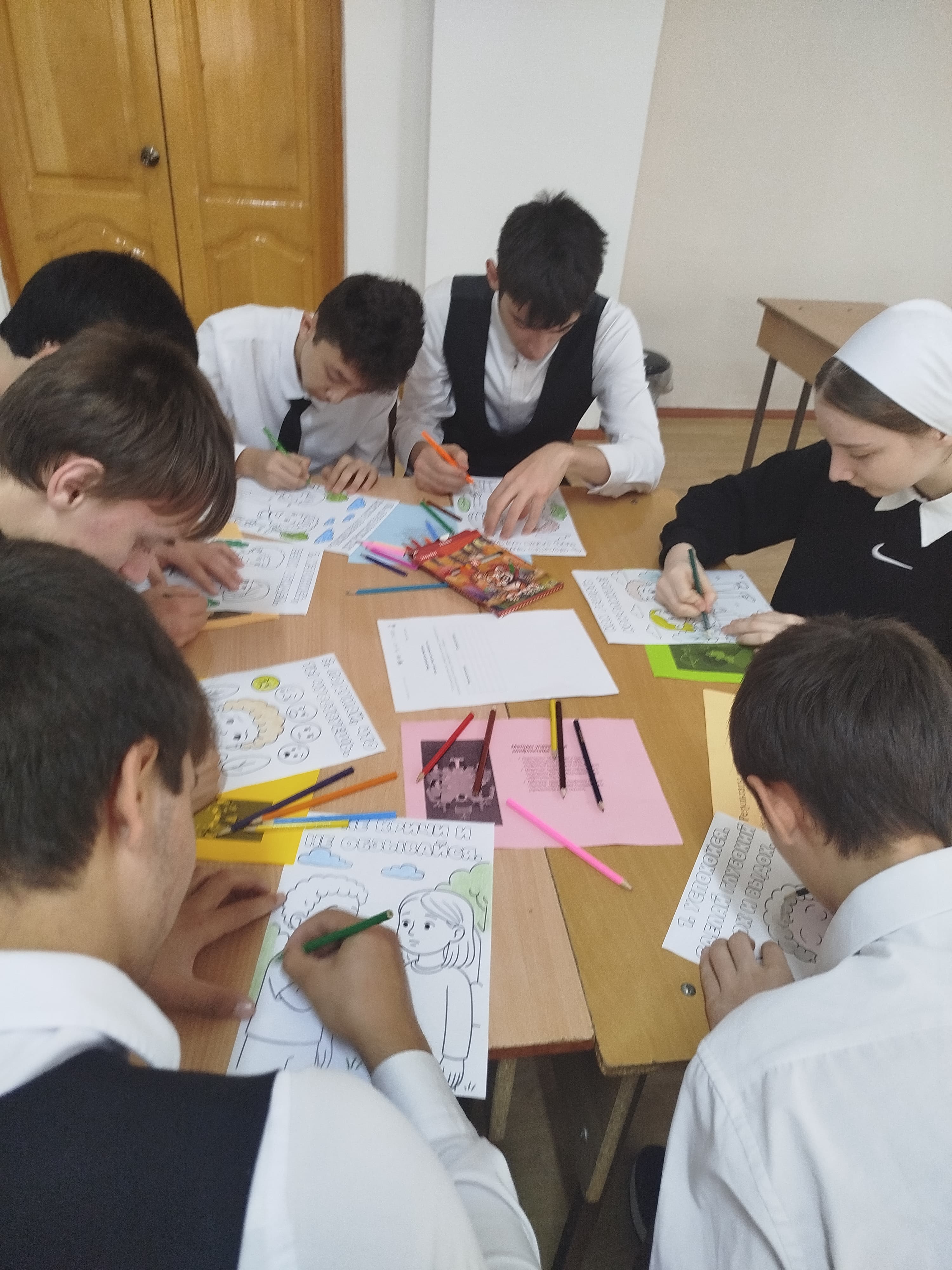 17.11.2025В 9-ом классе прошел необычный Разговор о важном":«Как справляться с конфликтами и трудностями? Ответ на этот вопрос ученики 9-го класса искали с помощью карандашей и красок. В рамках занятия "Разговоры о важном", приуроченного ко Дню психолога, мы использовали нестандартный подход — арт-терапевтические методики и метафорические раскраски. Это помогло подросткам выразить сложные эмоции, связанные с конфликтами и стрессом, и визуализировать собственные внутренние ресурсы для их преодоления. Творческий процесс сделал разговор более глубоким и личным.