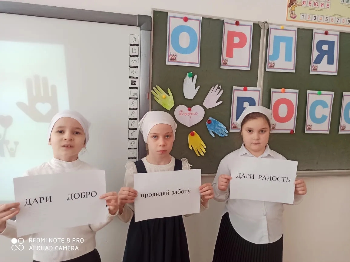 В рамках Всероссийского проекта «Орлята России» в 2 и 3 классах состоялись первые занятия из трека «Орленок-доброволец», которое называлось «От слова к делу». Тема занятия – бескорыстная помощь ближнему - была раскрыта через увлекательную программу.