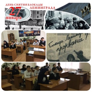 Для учащихся 1-4 классов проводился классный час «Героический подвиг Ленинграда в литературе», в ходе которого учащиеся читали стихи о блокадном городе. Члены патриотического клуба «Исток» подготовили и провели для учащихся 5-х и 6-х классов презентацию «900 дней блокады Ленинграда». Ребята рассказали о жизни ленинградцев в годы блокады. Учащиеся 5-6 классов проявили интерес к данной теме, принимали активное участие в беседе о жизни людей блокадного города. Ребятами зачитывались отрывки из дневников и мемуаров людей, живших в Ленинграде в годы блокады.
